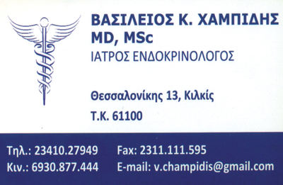 customer tabsΕπικοινωνία2ο Ιατρείο: Παπαναστασίου 37 & Λυδίας 1, ΘεσσαλονίκηΤηλέφωνο: 2311111511ΕνδοκρινολόγοιΔιαβητολόγοιΥγείαΘεσσαλονίκης 13, ΚιλκίςΠαπαναστασίου 37 & Λυδίας 1, ΘεσσαλονίκηΚΙΛΚΙΣΜΑΚΕΔΟΝΙΑ 2341027949 6930877444v.champidis@gmail.com Το προτείνω (έχει προταθεί 3 φορές) ΦωτογραφίεςFacebook LikeShare on FacebookTweet Widget